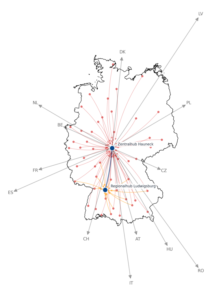 - Schnelle Weiterverladung: Von Hauneck aus geht die Sendung direkt über die Zielrelation in die Zustellung.